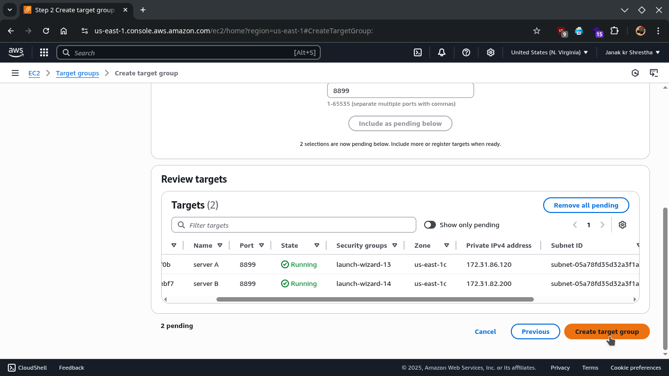 - Click Create Target Group.