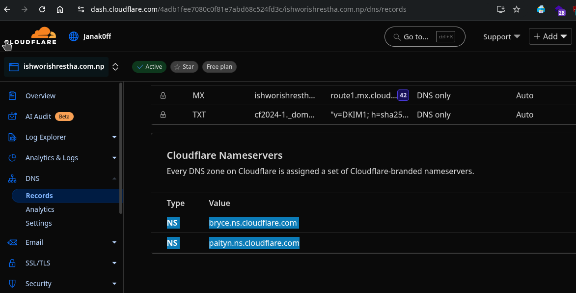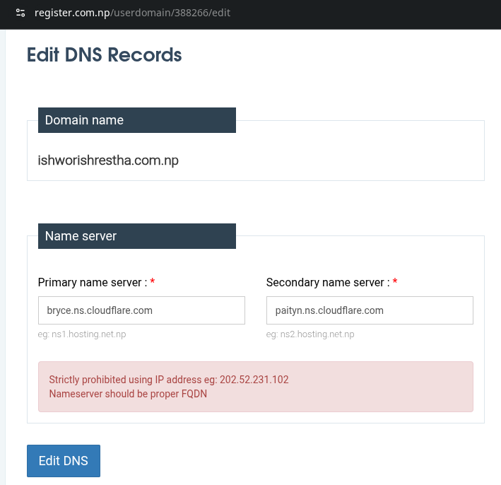 .com.npdomain fromregister.com.np. - Setting up Cloudflare as your robust DNS manager.