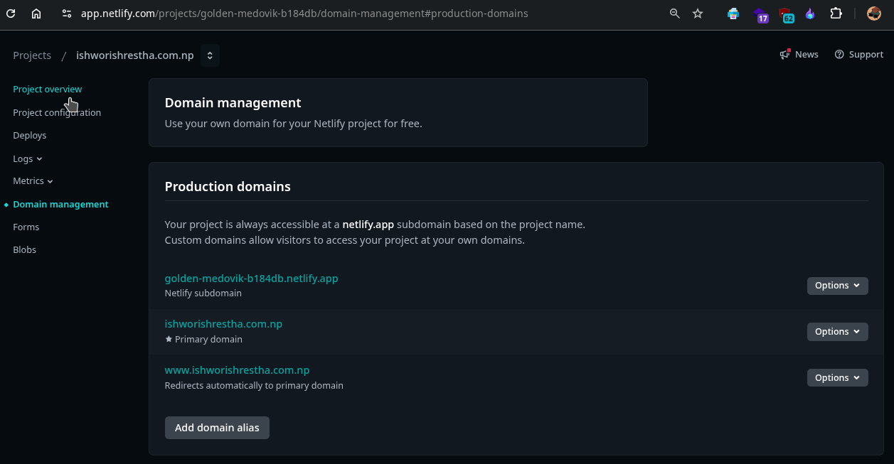 ishworishrestha.com.npandwww.ishworishrestha.com.np. Both should now lead to your Netlify-hosted project!