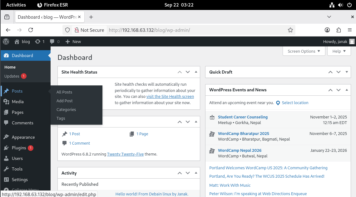 Steps to Host WordPress blog inside /var/www/html/blog in Debain Linux