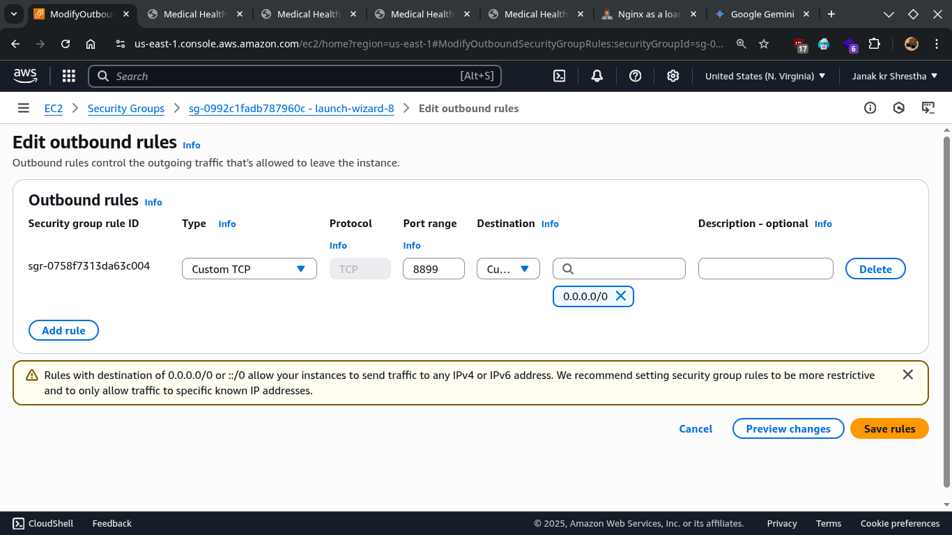 - Custom TCP (Port 8899): This is absolutely crucial. Allow inbound traffic on port 8899 ONLY from the private IP address of your “Primary” Nginx LB EC2 instance (Instance A), or from its Security Group ID. DO NOT open 8899 to 0.0.0.0/0.