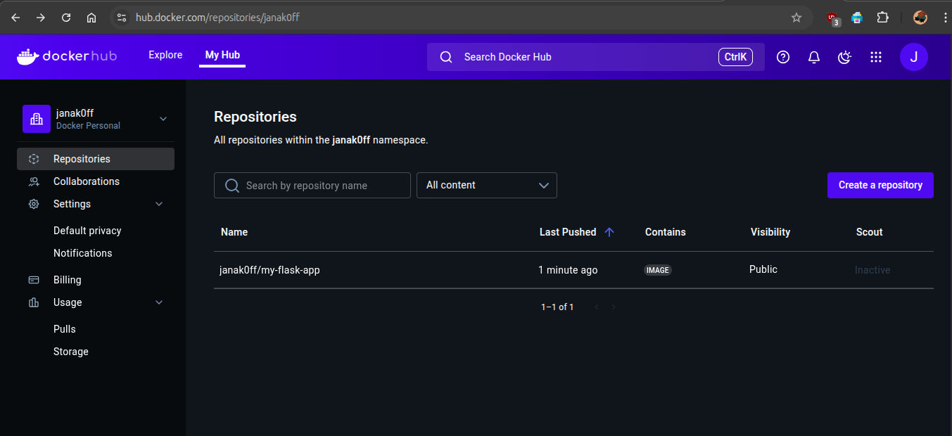 You should see both my-flask-app and your-dockerhub-username/my-flask-app listed.