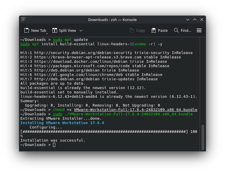 sudo ./VMware-Workstation-Full-17.6.4-24832109.x86_64.bundle