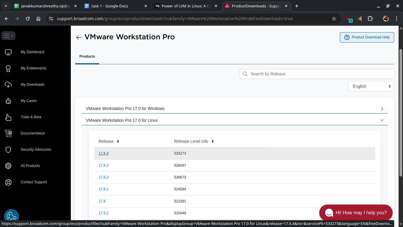 Download VMware Workstation Bundle File (Need broadcom.com account)