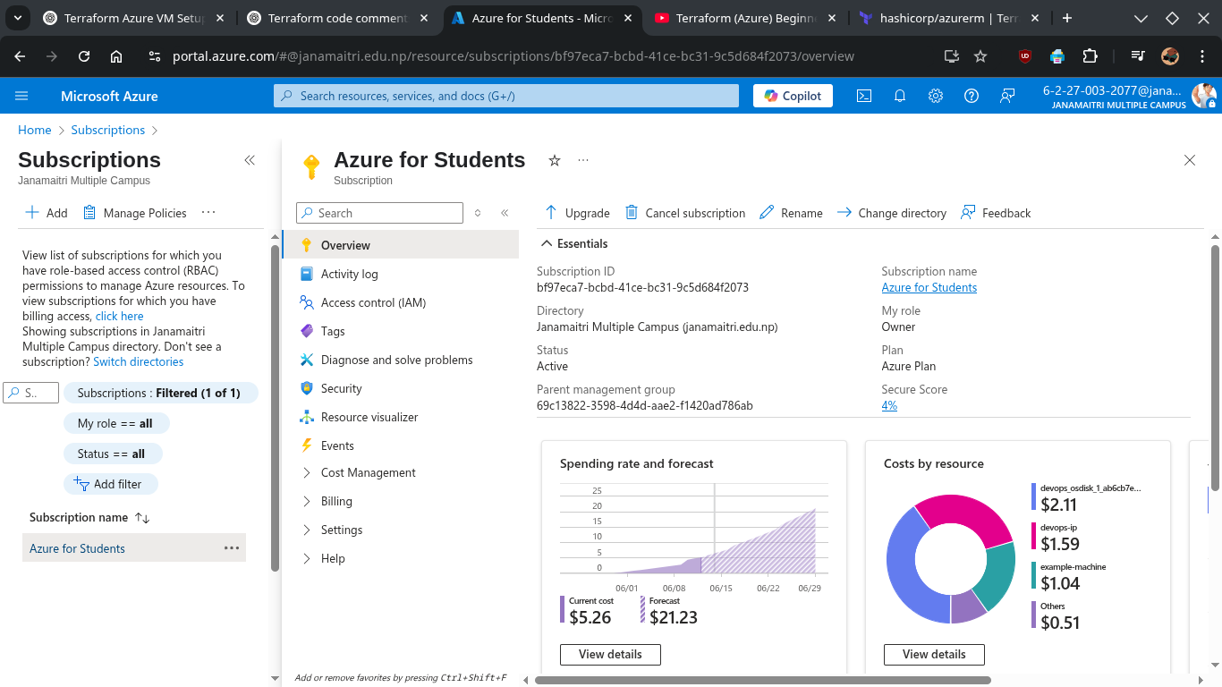 Terraform - Complete step-by-step process to create a (VM) on Azure and SSH under student pack subscription.