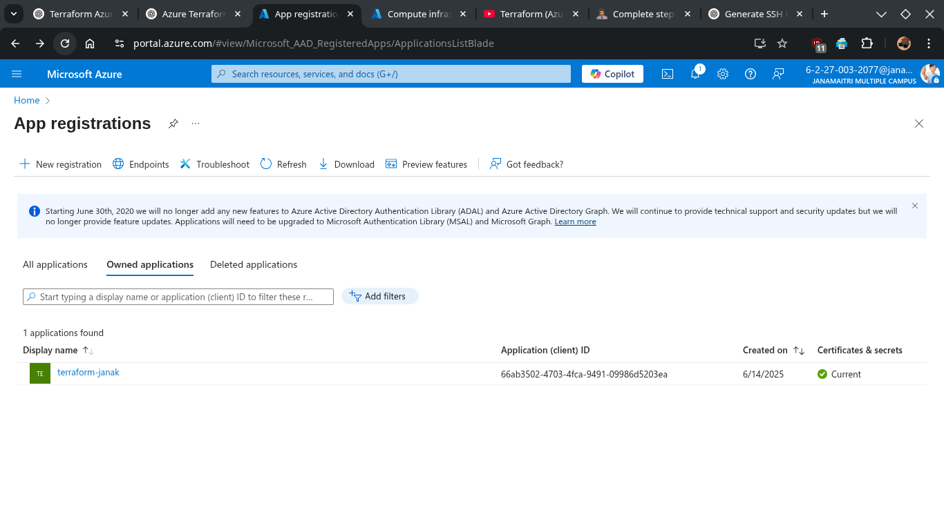 terraform-janak). - Leave the default Supported account types as Single tenant (or your choice).