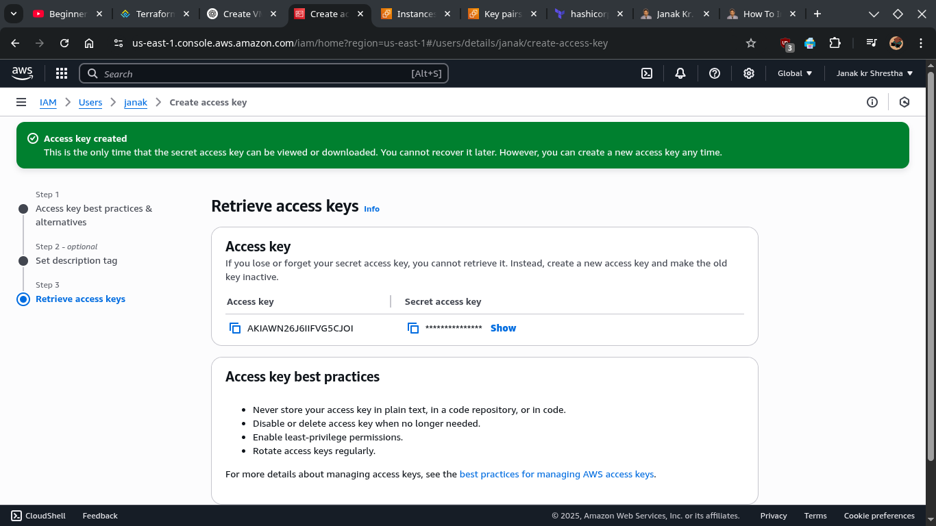 💡 Get access keys from: AWS Console > IAM > Users > Your Username > Security Credentials > Access Keys